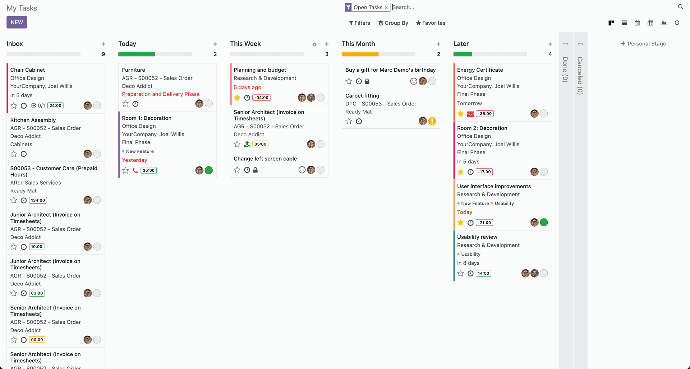 The Odoo project interface is designed for simplicity and speed: